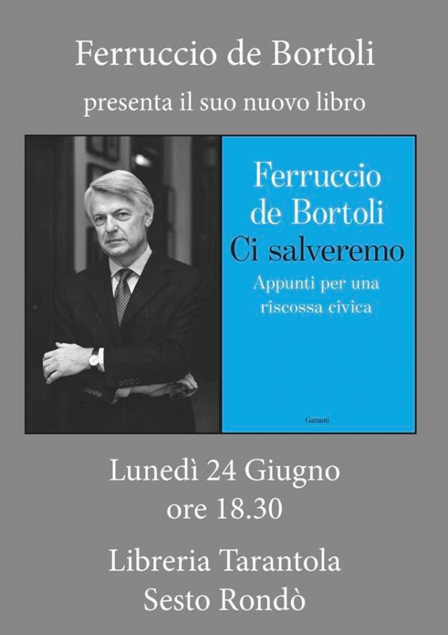 Lunedì 24 giugno alle ore 18:30 presso la Libreria Tarantola (Piazza Martiri di via Fani 1, Sesto San Giovanni), lo scrittore e giornalista milanese Ferruccio de Bortoli presenterà il suo nuovo libro "Ci salveremo - appunti per una riscossa civica".
