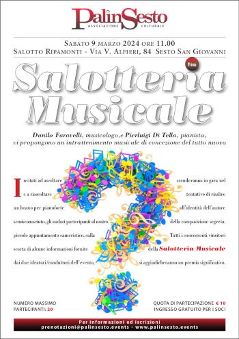 L'associazione culturale PalinSesto invita a "SALOTTERIA MUSICALE", il primo appuntamento di intrattenimento musicale di concezione del tutto nuova.