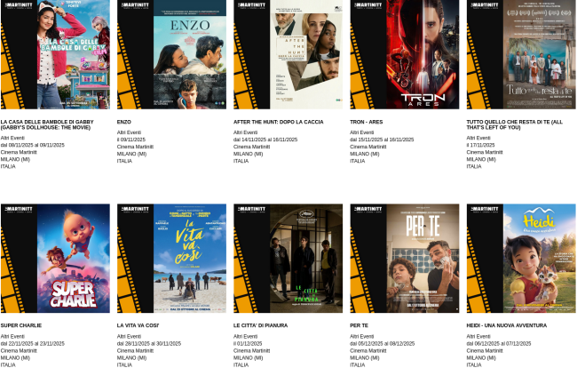 Il TEATRO/CINEMA MARTINITT propone una rassegna di film che appassioneranno gli spettatori perchè varia e legata alle ultime uscite cinematografiche.