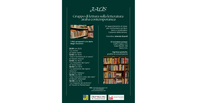 Un grande poeta arabo, Al-mutanabbi, scrive in una sua poesia: “Khayr jalìs fi-z- zàman kitàb” e cioè “il miglior compagno nel tempo è un libro”. Jalìs è una parola che sta a indicare colui che siede con te a conversare amichevolmente e questo è il principio su cui si basa il gruppo di lettura sulla letteratura araba.
