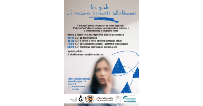 La proposta è quella di svolgere un percorso formativo che approfondisca il “divenire” degli adolescenti e lo metta in relazione con gli adulti di riferimento. L’uscita dall’infanzia e la presenza nel mondo degli adulti: quali sono le domande di ragazzi e ragazze? cosa rispondergli nel rispetto del loro esserci e del loro diventare grandi? I “chi sono” dell’adolescenza in una società in continua mutazione e la non facile ricerca di una propria strada. Cosa trasmettere in un passaggio generazionale?