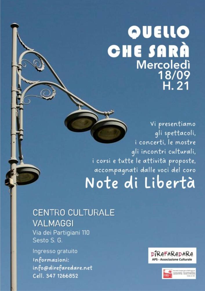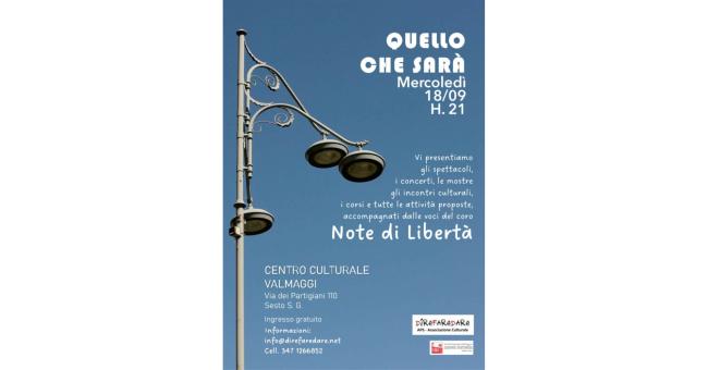 Ma se volete un’anteprima più dettagliata non mancate alla serata di apertura della prossima stagione, sarà l’occasione per raccontare tutto quello “che bolle in pentola”. Ma naturalmente sarà anche una serata speciale di musica con le voci e le canzoni del Coro Note di Libertà, che ci presenterà un repertorio variegato e interessante.