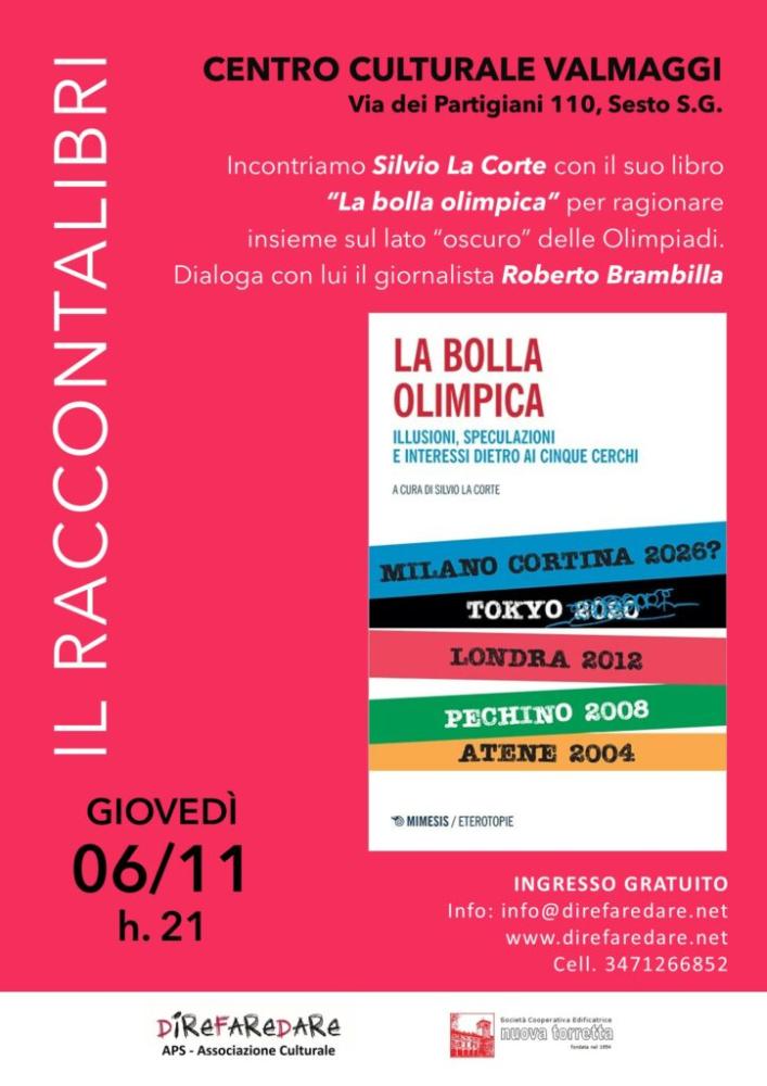 Proseguono gli incontri della rassegna “Il Raccontalibri” dedicati al mondo dello sport con la presentazione del libro “La bolla olimpica” del sestese Silvio La Corte, che si occupa, come si intuisce facilmente dal titolo, di Olimpiadi.
