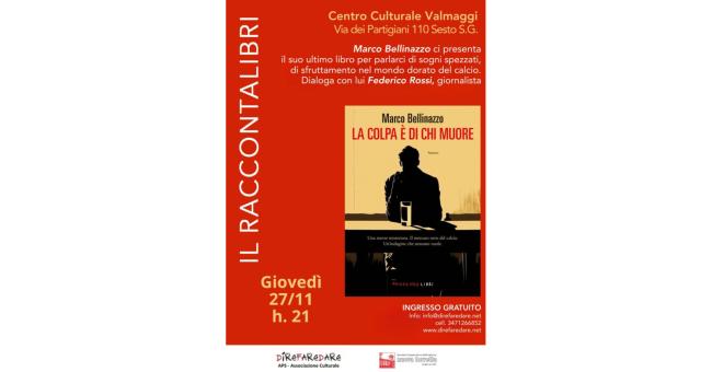 Marco Bellinazzo fa ritorno al Centro Culturale Valmaggi per presentare la sua ultima fatica letteraria, “La colpa è di chi muore”, con lui Federico Rossi, giornalista. Si tratta di un avvincente romanzo giallo che si sviluppa all’interno del mondo del calcio, un ambiente che l’autore conosce e racconta con sguardo lucido e appassionato.