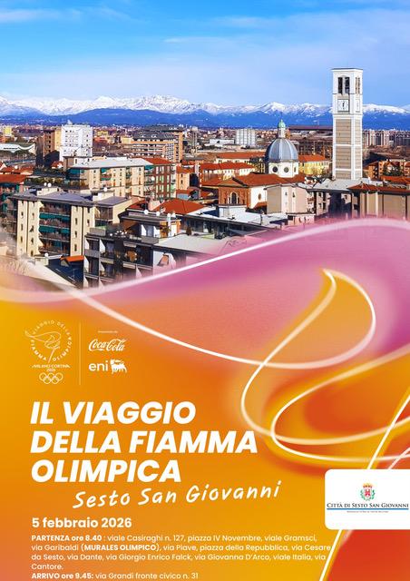 La staffetta del 5 febbraio 2026 prenderà il via proprio da Sesto San Giovanni, scelta come uno dei Comuni protagonisti del percorso ufficiale della Fiamma Olimpica. Si partirá alle 8:40 da viale Casiraghi 127, poi di seguito le diverse tappe: