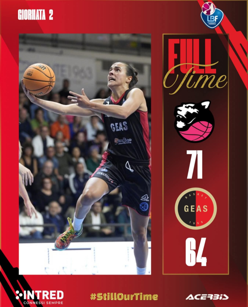 Per GEAS prova sontuosa di Scott, la quale chiude una prestazione monstre da 30 punti e 10 rimbalzi, mentre Conti si conferma in palla con 20 punti e grande leadership offensiva.