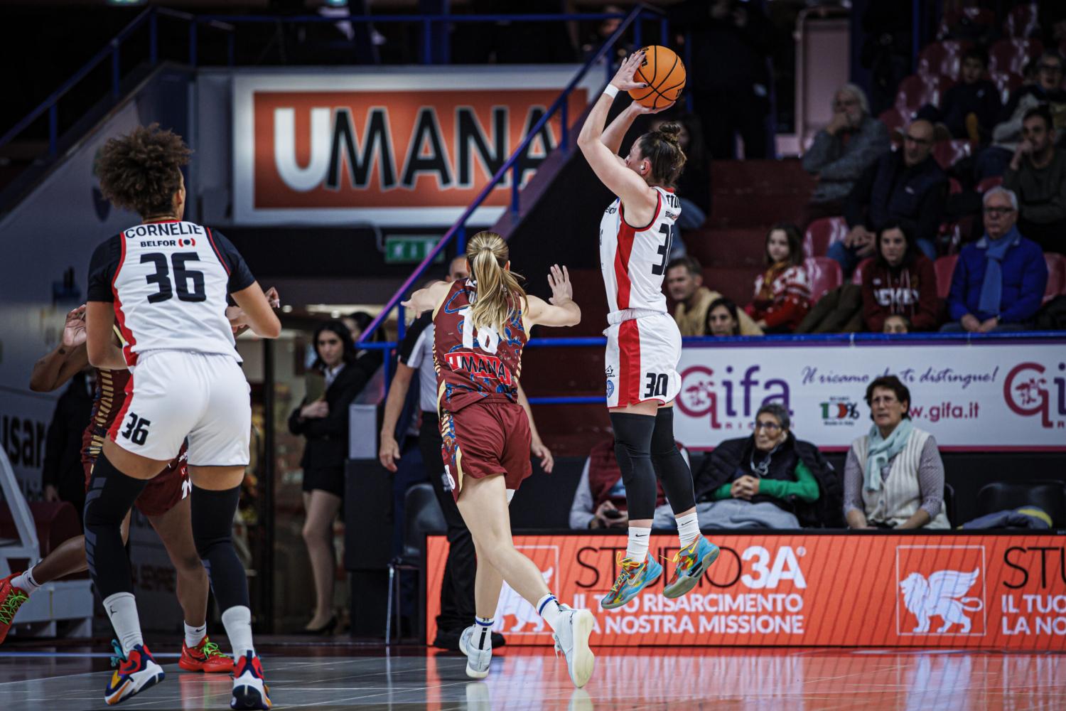 Miglior realizzatrice Moore con 16 punti , in doppia cifra anche Scott con 13 punti e Kacerik con 11. La migliore a rimbalzo invece è stata Cornelie con 6 palloni catturati.