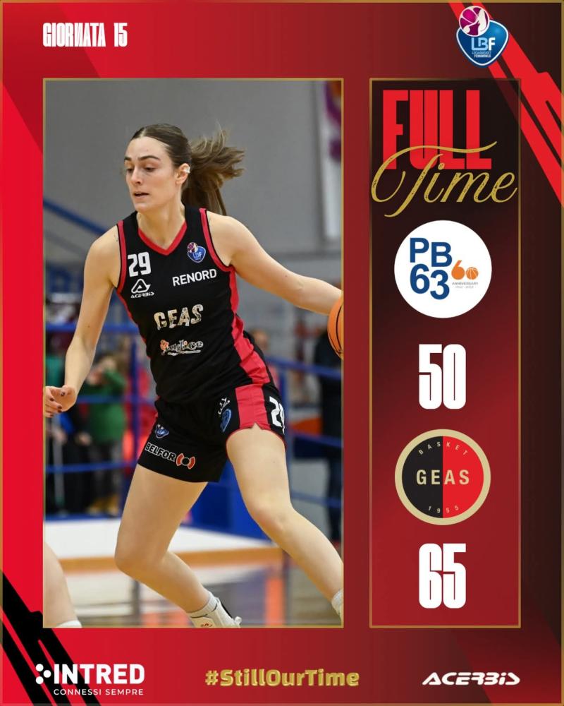 All’intervallo lungo, siamo sul +10 esterno (18-28).Al rientro in campo, Moore e Roumy fanno volare il Geas sul +17 (18-35 al 22’). A questo parziale, Battipaglia reagisce con un controparziale di 9-0 che culmina con la tripla del -8 di Baldassarre (27-35 al 24’). Le lombarde, però, non si lasciano destabilizzare e tornano immediatamente a sciorinare basket di qualità e, grazie a Roumy, guadagnano nuovamente terreno (+13 al 25’, 27-40). Nella seconda metà di un terzo periodo vivacissimo e assai gradevole, le due compagini segnano tanto viaggiando sostanzialmente alla medesima velocità , sebbene siano ancora le viaggianti a farsi preferire. Al 30’, il Geas ha le mani sul match (+16, 36-52).Nonostante il corposo svantaggio, la O.ME.P.S. inizia l’ultimo quarto in maniera assai volitiva e, trascinata da una Natabou autrice di una prova di spessore, recupera qualcosa (-14 al 33’, 40-54). Le lombarde, in ogni caso, restano saldamente al comando e, nel giro di poco più di un minuto, chiudono i conti sfiorando il ventello di vantaggio (+19 al 36’, 40-59). Negli ultimi minuti di una contesa guidata fin dagli istanti iniziali, il Geas controlla senza patemi e conquista un successo assai prezioso con il punteggio di 50-65.
