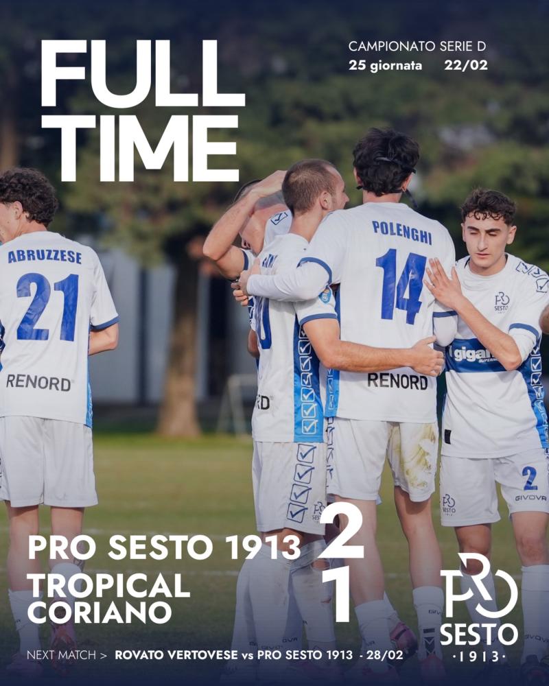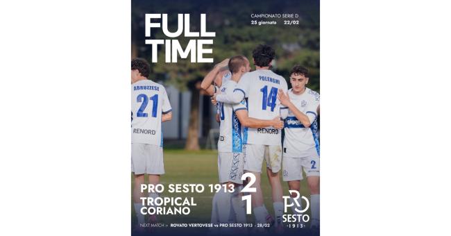Lo stadio Ernesto Breda di Sesto San Giovanni è stato teatro di una partita intensa, dove la Pro Sesto è riuscita a strappare tre punti fondamentali in ottica playoff contro un Tropical Coriano mai domo, che ha lottato fino all'ultimo secondo.