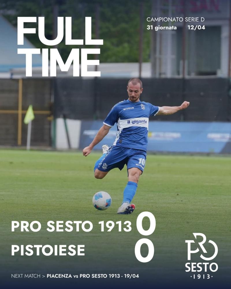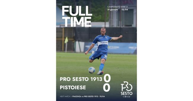 Scoppiettante 0-0 tra Pro Sesto e Pistoiese allo stadio Breda, le squadre si affrontano a viso aperto sfiorando più volte il gol ma l’equilibrio regge fino al fischio finale. Un pareggio importante contro una delle squadre migliori del campionato per la Pro Sesto che però si vede scavalcare in classifica dalla Pro Palazzolo. La Pro Sesto tornerà in campo domenica 19 aprile alle 15:00 allo stadio Garilli contro il Piacenza.