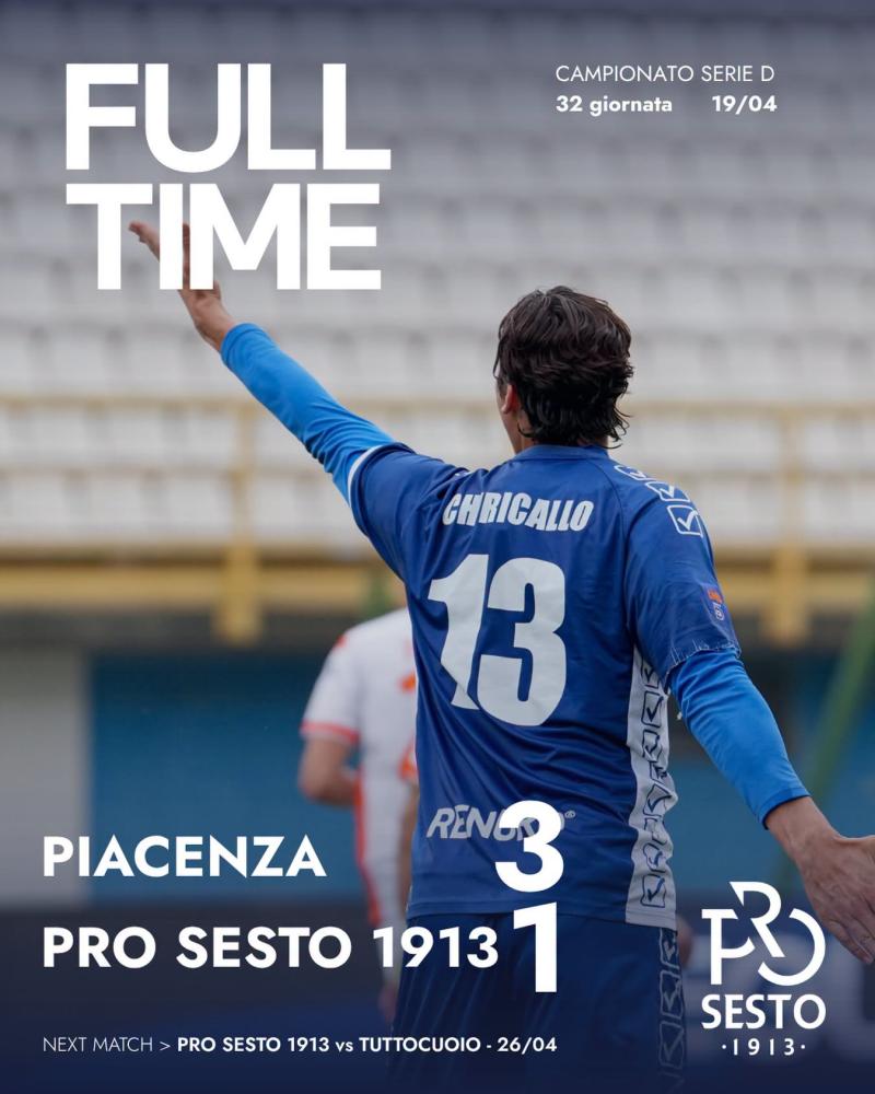 Terzultima di campionato ieri al Garilli di Piacenza tra i padroni di casa (che hanno quasi certamente blindato la quarta posizione) e una Pro Sesto alla ricerca di punti importanti per rientrare nella griglia playoff.