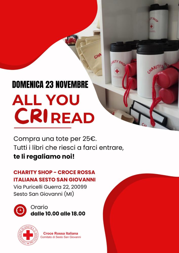 Il Prossimo 23 novembre dalle ore 10 alle ore 18 il Charity Shop di Croce Rossa di Sesto San Giovanni si trasforma in una libreria e lancia una sfida culturale!