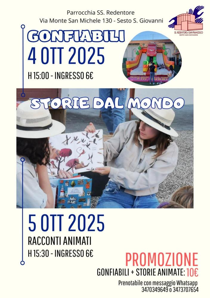 -5 ottobre : Storie dal Mondo Un viaggio tra culture, tradizioni e racconti: laboratori creativi, letture animate e testimonianze da diversi Paesi. Un modo per scoprire il mondo attraverso gli occhi di chi lo vive, promuovendo il dialogo, l’accoglienza e la bellezza della diversità .