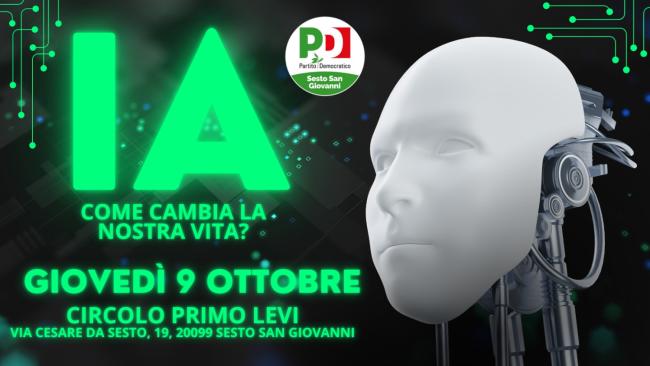 Si terrà giovedi 9 ottobre alle ore 21 presso il Circolo Primo Levi (Via Cesare da Sesto 19, Sesto San Giovanni) l'incontro "IA - come cambia la nostra vita?".