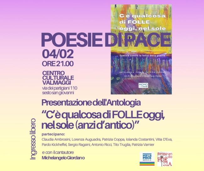 Un evento ricco di poesia, musica ed impegno sociale, durante il quale verrà presentata l’antologia “C’è qualcosa di FOLLE oggi nel sole (anzi d’antico), a cura del Gruppo Informale Respirando Poesia, edizione MoltiMondi.