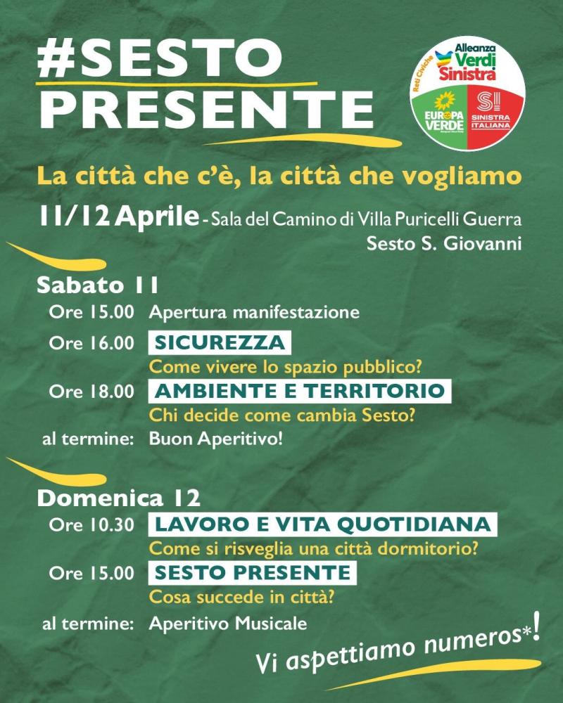 Parleremo di Urbanistica e Ambiente, perché servono prospettive alternative alla continua cementificazione Parleremo di Lavoro e Vita Quotidiana perché è ora che suoni la sveglia in questa Sesto sempre più dormitorio.