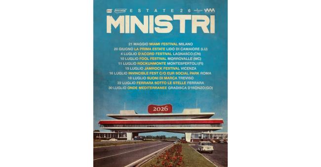 Dopo il grande successo del Provincia Popolare Tour, I Ministri annunciano le date per il tour per l'ESTATE 2026: una nuova serie di date che accompagnerà il pubblico nei mesi estivi, portando l'energia del disco sui palchi all'aperto e nei festival lungo tutta la penisola.