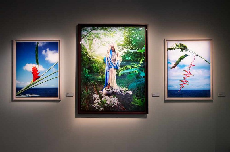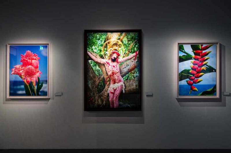 Molte tra le opere presenti in mostra rimandano alle serie più famose dell’artista, come i famosissimi scatti che hanno reso David LaChapelle un’icona vivente della cultura pop. Basti pensare alle innumerevoli collaborazioni con star internazionali del calibro di Madonna, Britney Spears, Michael Jackson, David Hockney, Elizabeth Taylor, Muhammad Ali, Jeff Koons, Uma Thurman, David Bowie e altri ancora. Nel percorso espositivo sono presenti opere note, citazioni di classici della storia dell’arte, come Deluge del 2006 ispirato al Diluvio Universale della Cappella Sistina, oppure la serie Land Scape del 2013 o Revelations, opera del 2020 che in questo progetto assumono una luce nuova. In mostra sono ospitati anche nuovi scatti, per la prima volta esposti, concepiti dopo l’esperienza del biennio pandemico, nel contesto naturale delle foreste hawaiane, dove LaChapelle ha preso residenza. Si tratta di scatti che interpretano alcuni passaggi della Bibbia e in cui lo stile si fa piano piano più intimo e riflessivo.